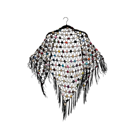 Crochet Fishnet Shawl With Multicolored Accents & Fringe Trim #8070