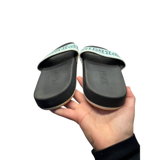 Victorias Secret Pink Mint Green & Black Slide Sandals Size 8 #9402