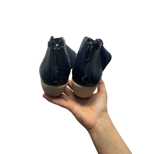 Navy Bandolino Leather Ankle Strap Wedge Sandals With Back Zipper Closure #7921