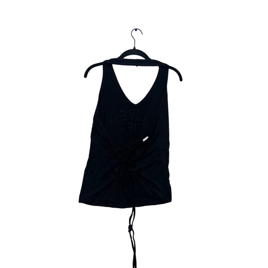 Live Free Black Graphic Tank Top With Motorcycle & Rose Design #811A