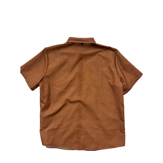 Mens XL Brown & Yellow Graphic Short Sleeve Button-Up Shirt By Ouku #6535