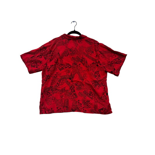 Men’s Vintage Prairie Rose Red Hawaiian Button-Up Shirt #2914