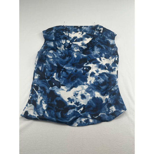 Anne Klein Womens Blue Tie-Dye Sleeveless Ruffled Blouse L #6316