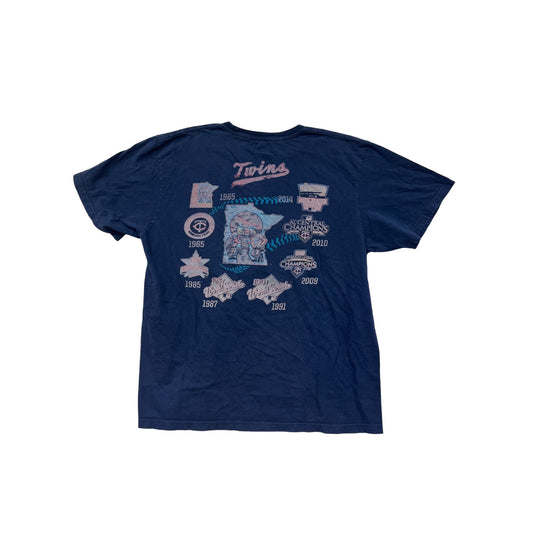 Minnesota Twins Majestic Triple Peak T-Shirt XL Blue Cotton #8281