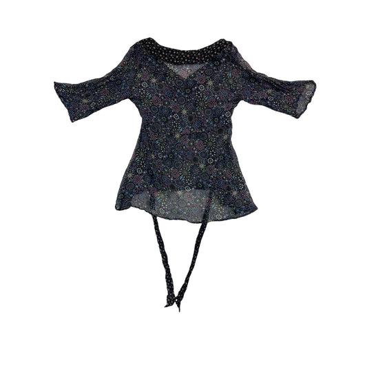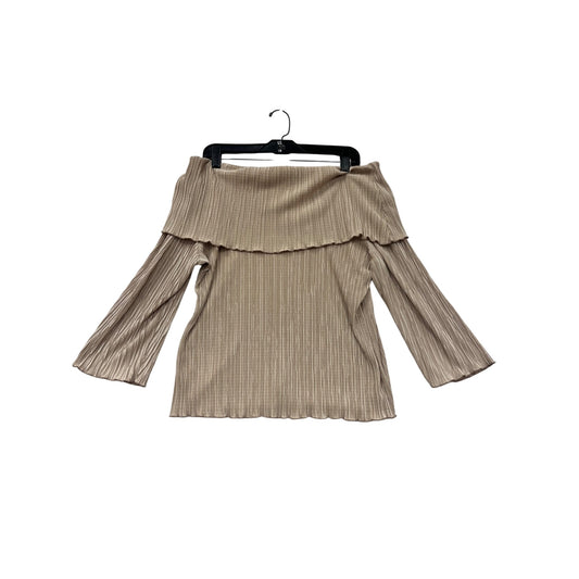 Off-The-Shoulder Pleated Beige Blouse With Bell Sleeves Womens Large By CDW #6614