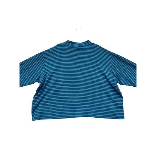 Plus Size 4X Blue & Green Striped Mock Neck Long Sleeve Sweater #159A