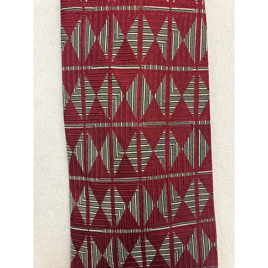 Red Silk Tie With Small Geometric Patterns By FC #8664