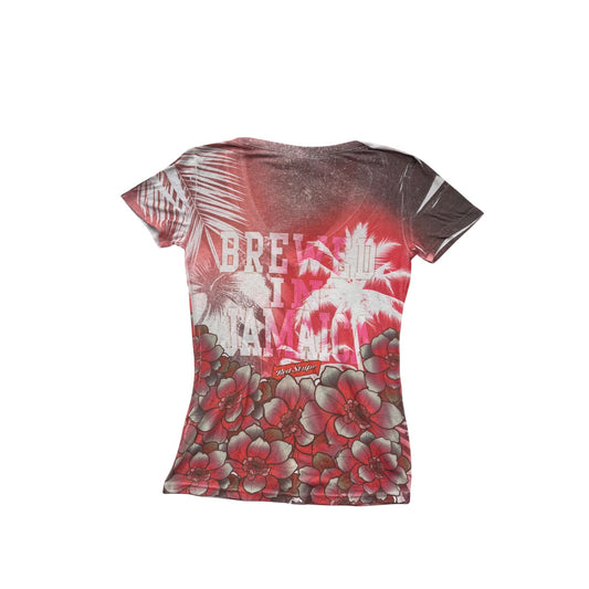 Red Stripe Womens Floral & Palm Print V-Neck T-Shirt Large #6771