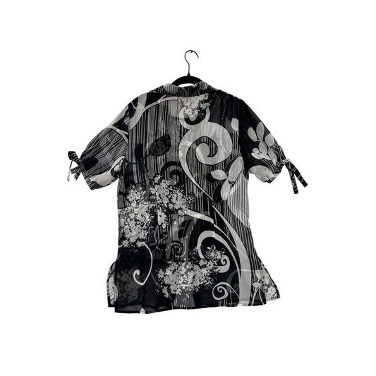 Sheer Black & White Floral Striped Blouse By Nicola #6098