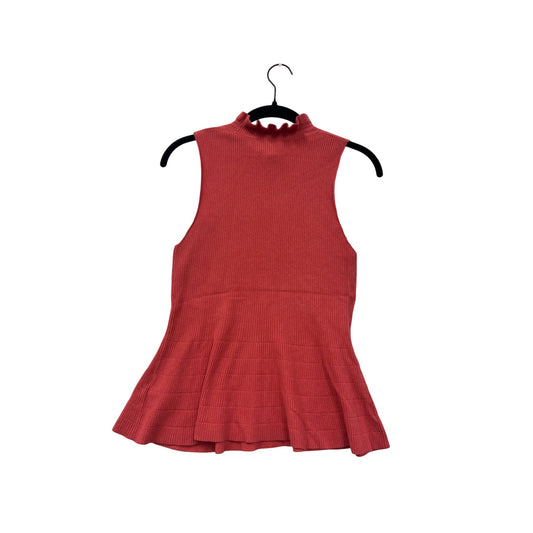 Sleeveless Red Peplum Sweater Top With Ruffle Mock Neck #6627