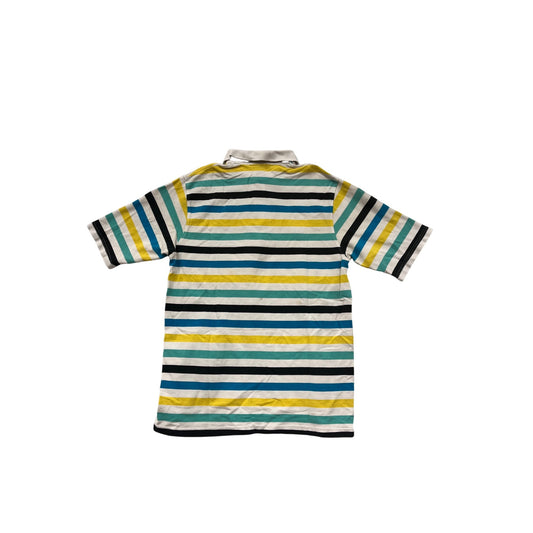 Southpole Mens Large Striped Polo Shirt Yellow Blue Green White Short Sleeve 100% Cotton #6848