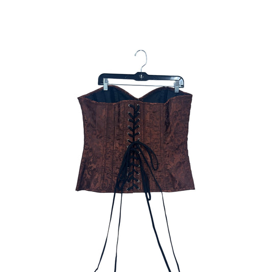 Steampunk Gothic Brown Jacquard Corset With Lace-Up Back & Front Zip Closure XXL #181A