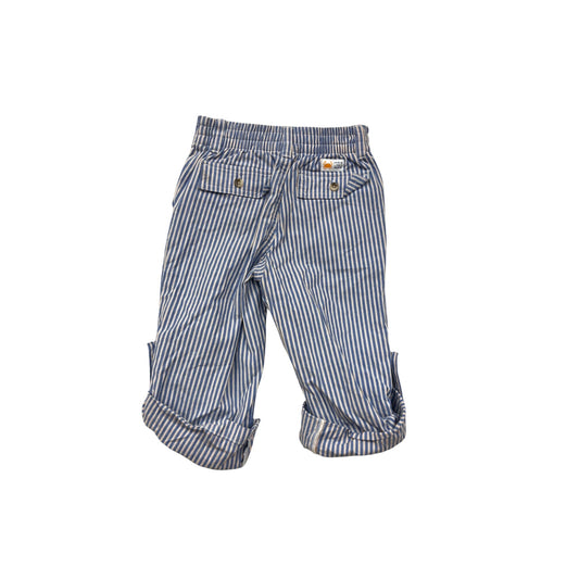 Striped Blue & White Cotton Roll-Up Pants With Elastic Waist - 2T #8470