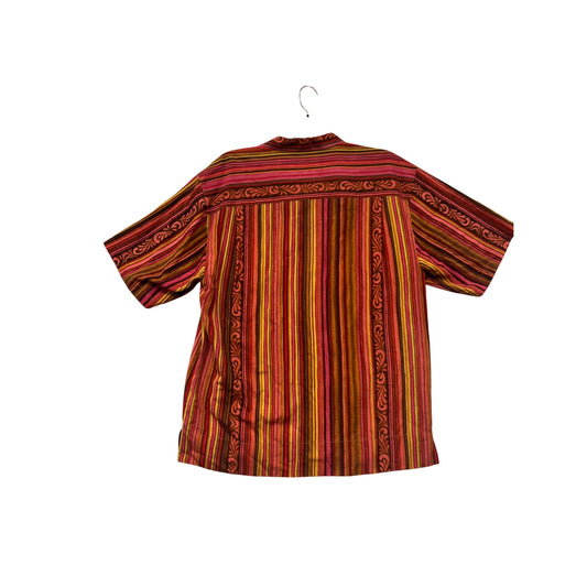 Tommy Bahama Silk Button-Up Shirt Red Stripe Pattern Size L #8340