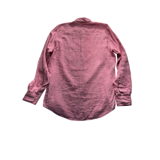 Toscano Aqua Red Gingham Long Sleeve Button-Up L 100% Linen #9041