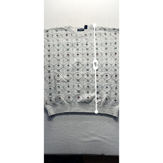 Van Heusen XL Gray Crewneck Sweater With Geometric Pattern Cotton Blend #9608