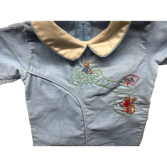 Vintage Baby Blue Corduroy Romper With Embroidered Peter Rabbit Design Size 6-9 Months By Feltman Brothers 6032