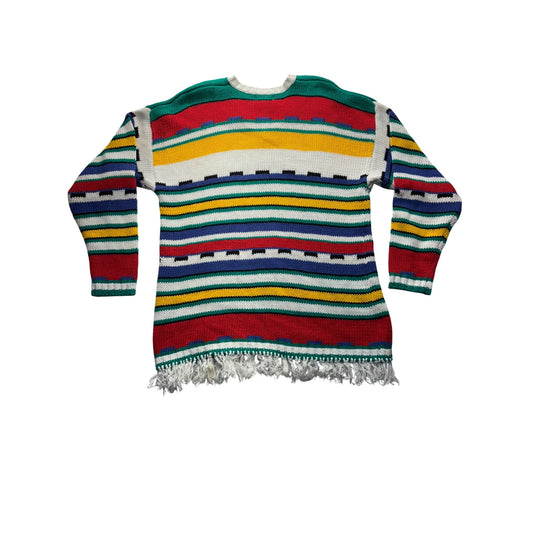 Vintage Boundary Waters Striped Fringe Sweater #7673