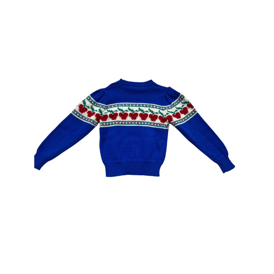 Vintage Blue Knit Sweater W/ Red Heart Pattern By Knit Collections #145A