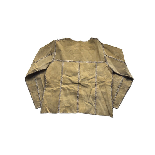Vintage Chicos Design Womens Size 1 Tan Leather Embroidered Jacket #7962