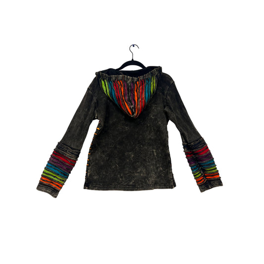 Vintage Inspired Embroidered Denim Hoodie Jacket With Colorful Ethnic Detailing #817A