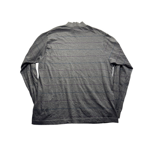 Vintage Jockey Gray Striped Long Sleeve Mock Neck Shirt 100% Cotton #7870