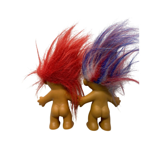 Vintage Russ Troll Dolls With Red & Red/White/Blue Hair 2-Piece #7270