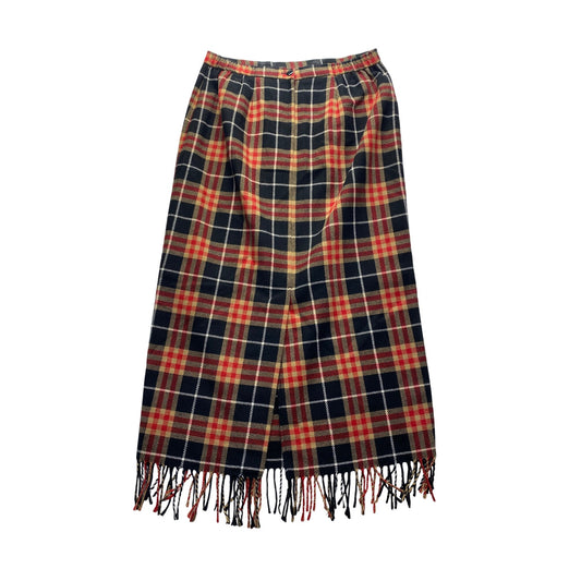 Vintage Requirements Petite Plaid Fringe Maxi Skirt Back Slit Size 10P #7202