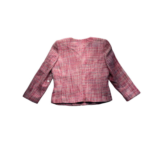 Walter Womens Tweed Blazer Pink Plaid Open Front #7682