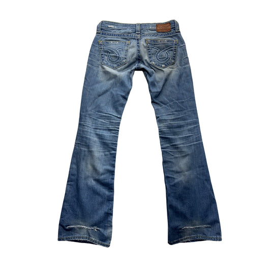 Big Star Liv Distressed Flare Jeans With Embroidered Patches Size 25R #9553