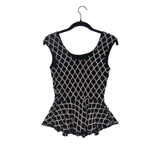 Black & Beige Crochet Peplum Top By Alt.B Womens S #6834