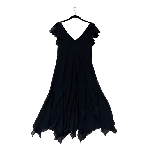 Black Chiffon Handkerchief Hem Dress With Pink Embroidery & Beading By S.L. Fashions Petite M/L #8919