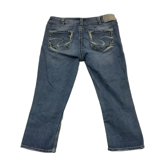 Women’s Y2K Angels Blue Flared Jeans Size 5 With Embellished Pockets & Faded Wash #6738