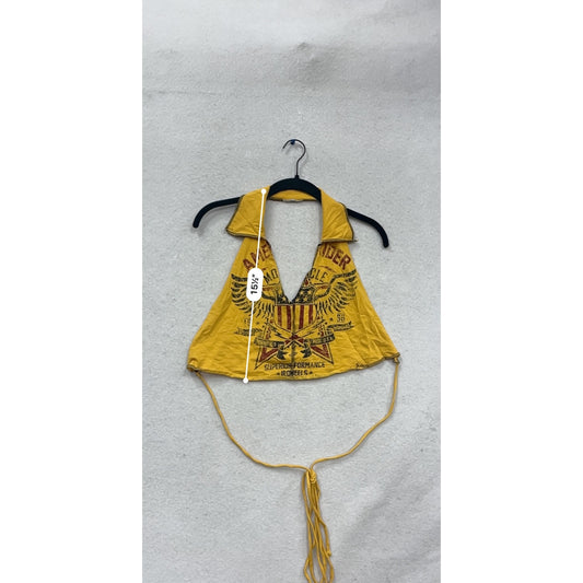 Yellow American Rider Halter Crop Top With Tie Back #806A