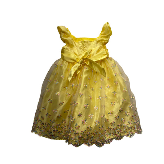 Yellow Toddler Floral Embroidered Dress With Bow & Ruffled Sleeves #7037