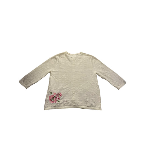 Breckenridge Petite Womens Floral Embroidered Button-Up Cardigan Sweater #7350