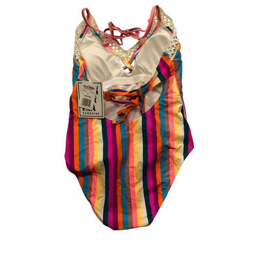 *NWT* Striped Multicolor One-Piece Swimsuit With Crochet Trim #7321