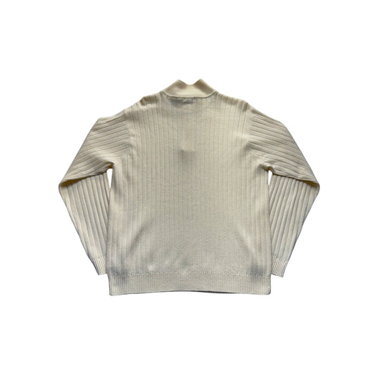 Cream Ribbed Half-Zip Sweater Pullover Size L 9428