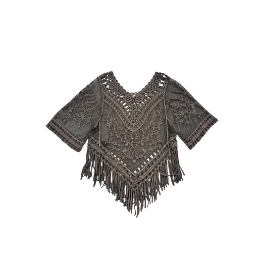 Crochet Fringe Embroidered Poncho Top S/M #538A