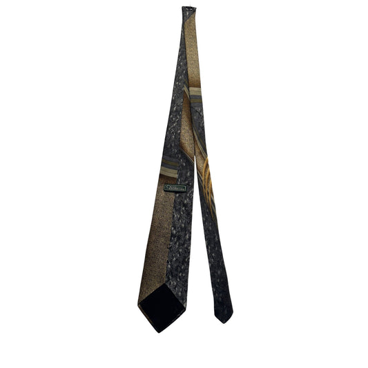 Croft & Barrow All Silk Tie With Abstract Gold & Gray Design #9113