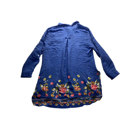 Figueroa & Flower Womens Blue Long-Sleeve Button-Down Tunic Top #7342