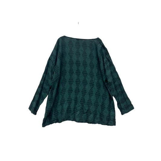 Flax Green Patterned Linen-Cotton Blend Long Sleeve Top Size L #167A