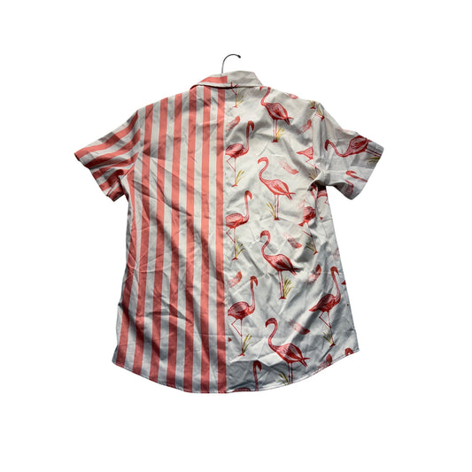 Flamingo & Striped Short-Sleeve Button-Up Shirt By Vatpave #7549