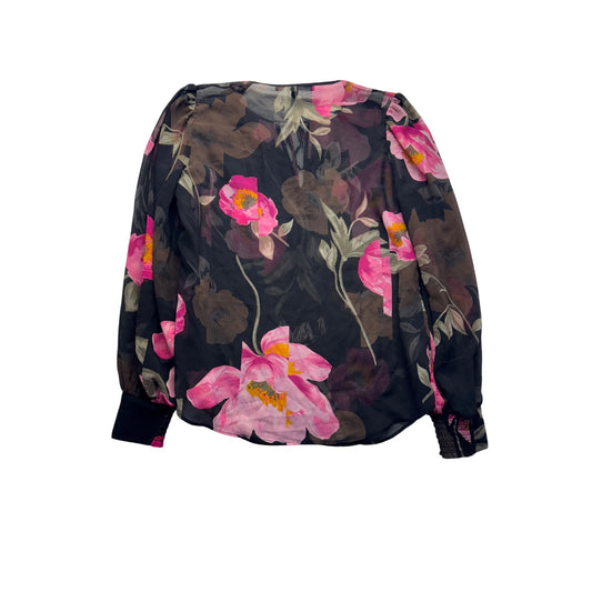 Floral Chiffon Tie-Neck Blouse XS By White House Black Market #9118