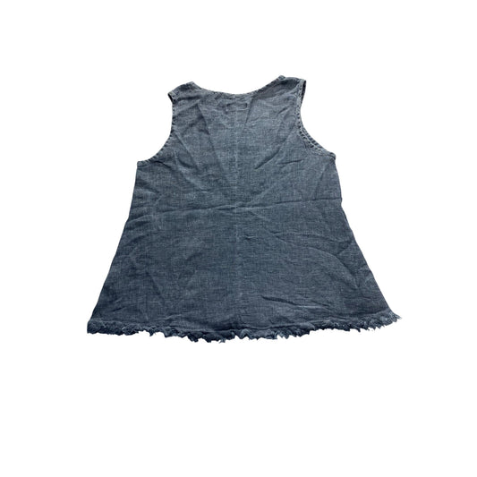 Flora Ashley Womens Blue Linen-Cotton Frayed Hem Sleeveless Top #7344
