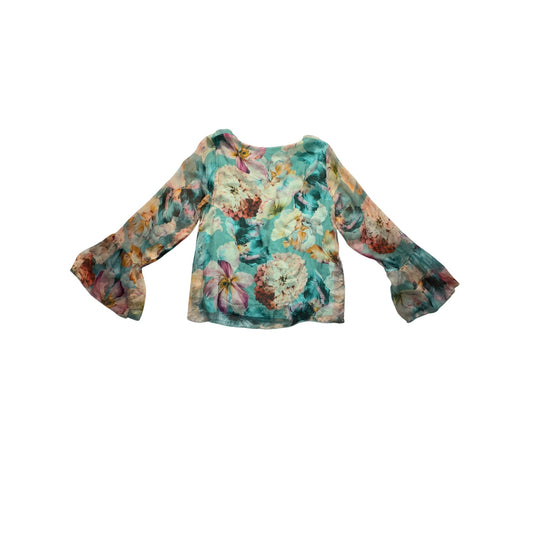 Floral Bell Sleeve Silk Sheer Blouse #7580