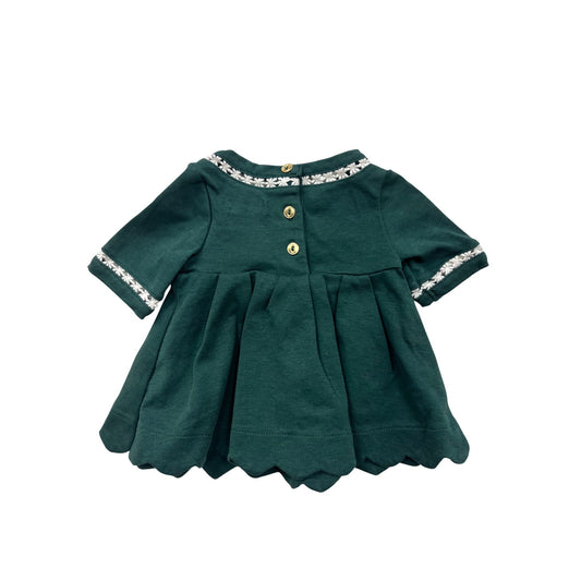 Green Baby Girl Dress With Lace Trim & Bow Accent Size 3-6M By Tahari #6517