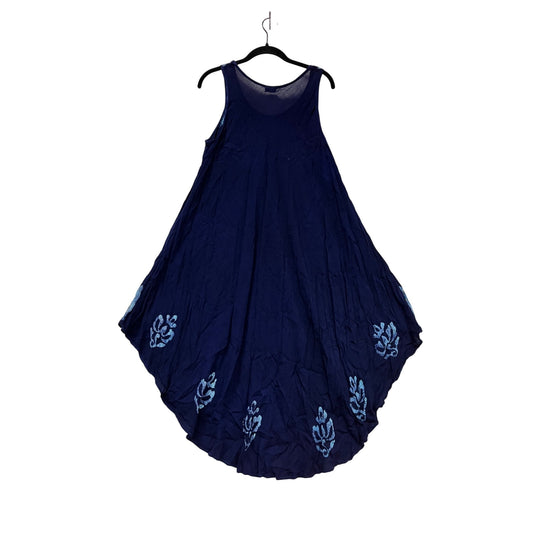 Indigo Blue Batik Leaf Print Sleeveless Maxi Dress Free Size #424A