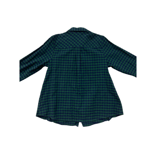 Joan Rivers Womens Green & Navy Plaid Button-Side Long-Sleeve Cotton Shirt L #6908