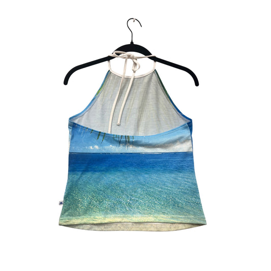 JLO By Jennifer Lopez Womens Halter Tank Top Beach Print "Wish You Were Here" #6566